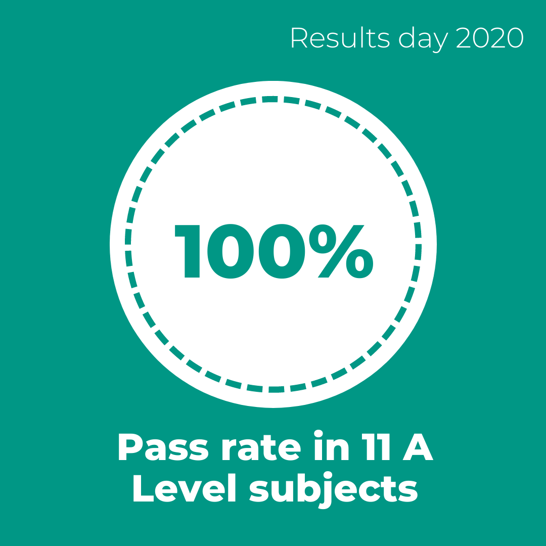 100% pass rates in 11 A Level subjects